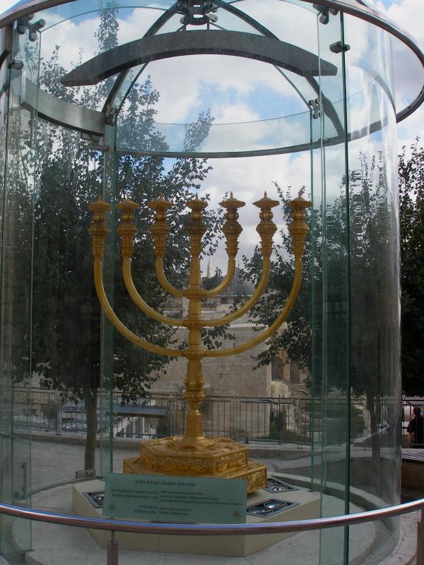 Recreated Temple menorah displayed in the Jewish Quarter (Seetheholyland.net)